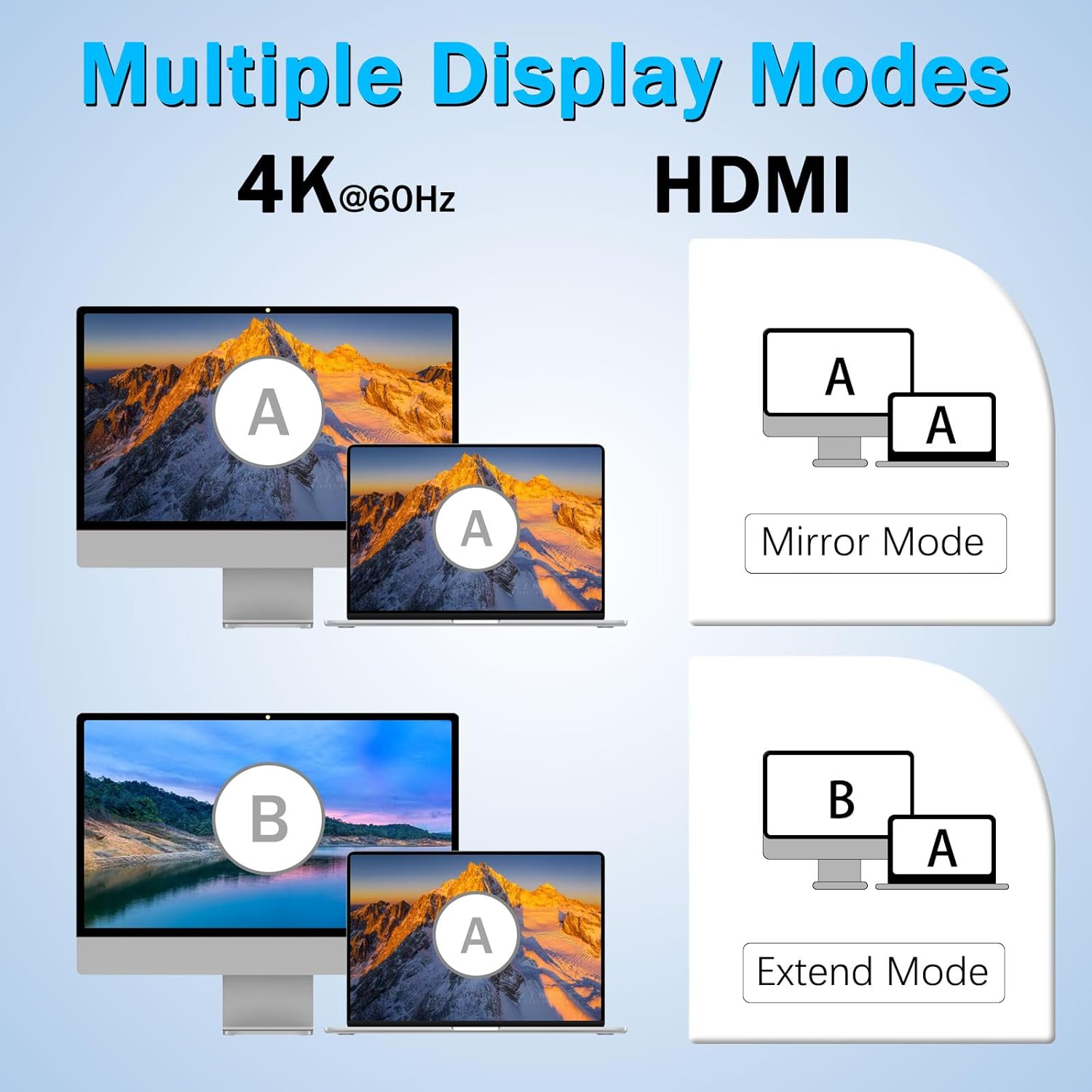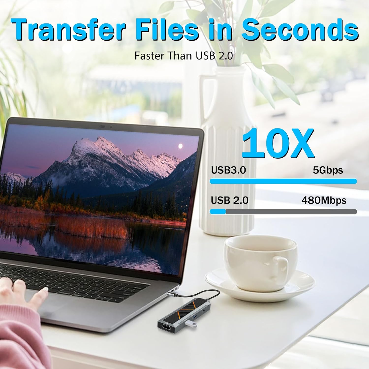 Бо дастгирии баромади дисплейи 4K ва интиқоли суръати баланд, Hub 4-дар-1 USB-C бо 4K 60Hz HDMI Splitter ба корбарон кӯмак мекунад, ки иқтидори пурраи дастгоҳҳои худро ҳангоми нигоҳ доштани фазои кории муташаккил ва муташаккил боз кунанд.