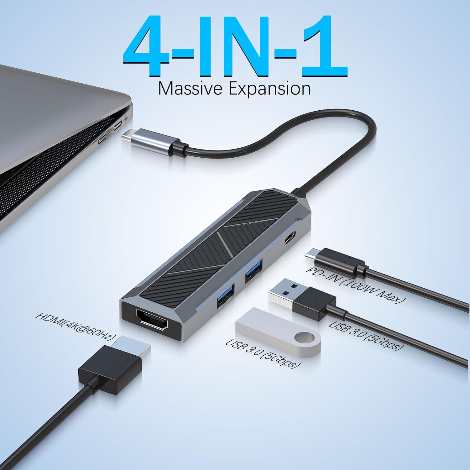 4-дар-1 USB-C Hub бо 4K 60Hz HDMI тақсимкунанда - Пайвасти паймон барои дастгоҳҳои муосир
