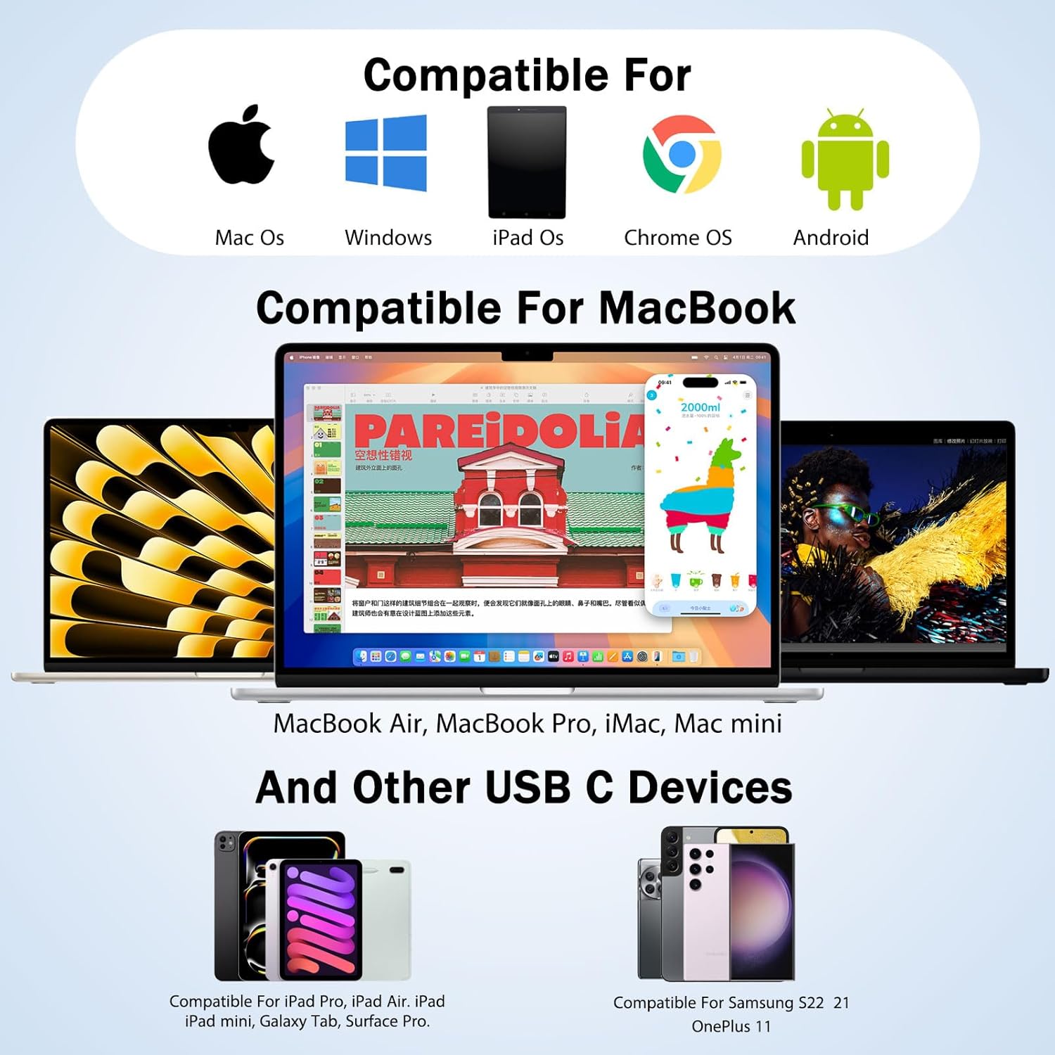 Hub 4-дар-1 USB-C бо 4K 60Hz HDMI Splitter бо бисёре аз дастгоҳҳои муосири муҷаҳҳаз бо портҳои USB-C, ки баромади видеоро дастгирӣ мекунанд, мувофиқ аст.