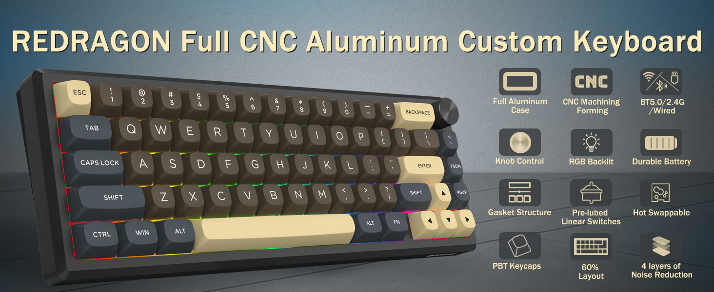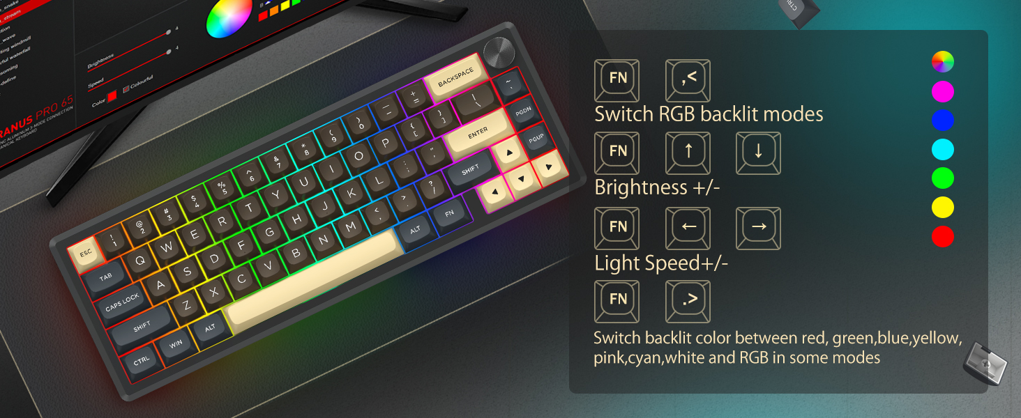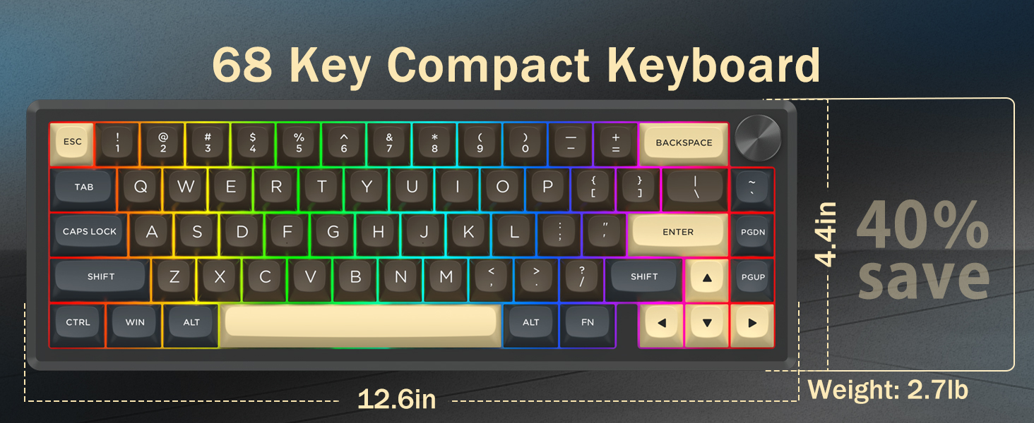 A: Тарҳбандии 60% андозаи клавиатураро тавассути хориҷ кардани калидҳои ғайримуқаррарӣ коҳиш медиҳад. Ин фазои бештари мизи корӣ фароҳам меорад ва интиқолро беҳтар мекунад ва ҳамзамон имкон медиҳад, ки ба ҳама вазифаҳо тавассути комбинатсияи калидҳо дастрасӣ пайдо кунанд.