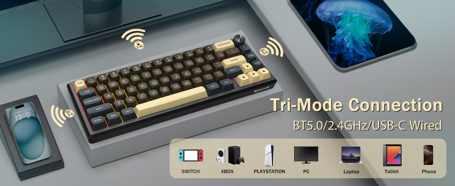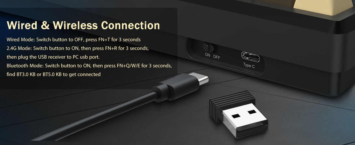 Ҷавоб: Бале, клавиатураи сиёҳи K727 60% бесими механикии бозикунии пайвастҳои бесим ва симиро дастгирӣ мекунад. Истифодабарандагон метавонанд вобаста ба эҳтиёҷоти худ байни режимҳоро иваз кунанд.