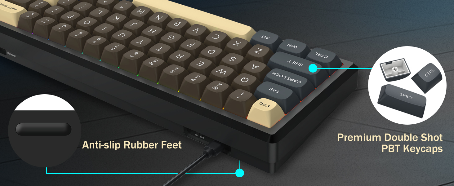 Бо тарҳбандии 60% ин клавиатура калидҳои ғайримуқаррариро хориҷ мекунад ва дар ҳоле ки функсияҳои асосӣ тавассути таркиби калидҳо нигоҳ дошта мешавад. Ин тарҳ ба кам кардани бесарусомонии мизи корӣ кӯмак мекунад ва барои ҳаракати муш фазои бештар фароҳам меорад, ки онро ҳам барои бозӣ ва ҳам муҳити маҳсулнокӣ мувофиқ мекунад.