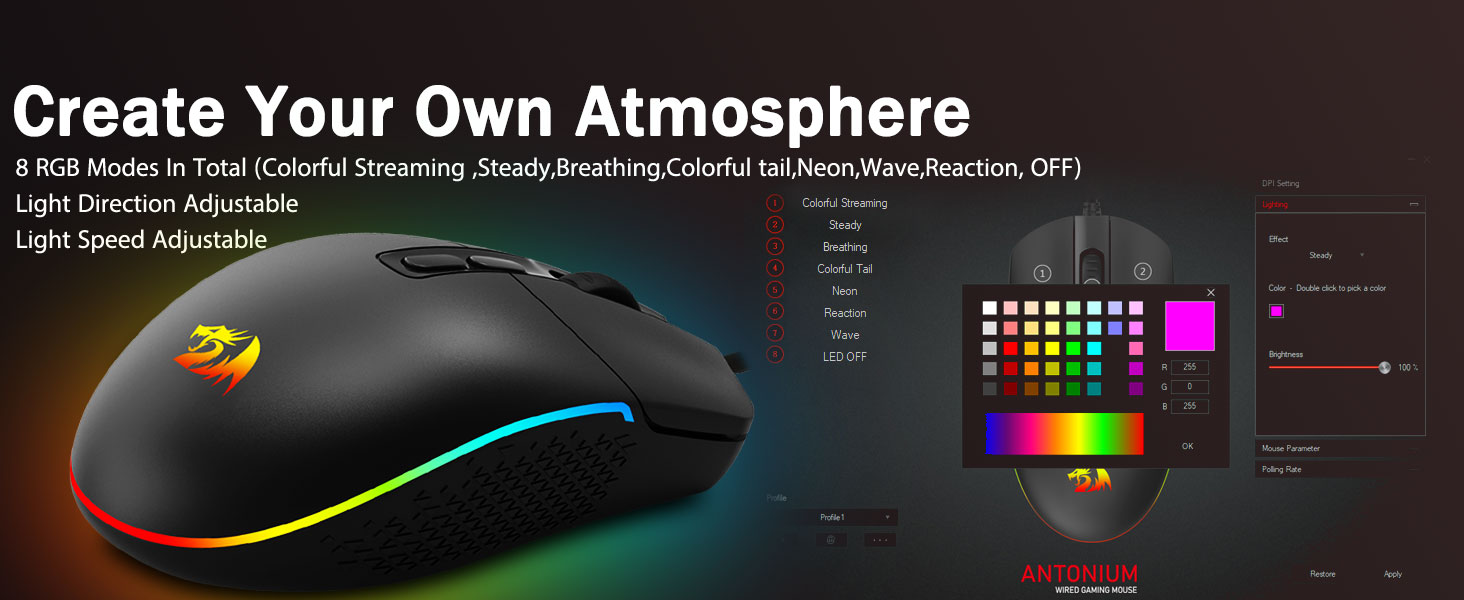 Chuangquan Monsully истеҳсоли рехтани M719 Worl Mushing Musing Musing RGB Pouse, интихоби боло барои хариди оммавӣ. Тавсифоти асосӣ як сенсори дақиқро дар бар мегиранд, ки доираи васеи сатҳи DPI-ро (то 10,000), қурби интихоботи танзимшавандаро (то 1000 то 1000г) барои пайгирии ултрабунафш ва 7 тугмаҳои барномавӣ барои назорати фармоишӣ доранд. Равшании RGB REBRATT RATLLINT бо таъсири сершумор фазои бозича эҷод мекунад. Бо чанголи эргономикӣ барои тасаллӣ тарҳрезӣ шудааст, он ҳамчун силоҳи ултаби қиматбаҳо хизмат мекунад. Ҳамчун молрасон аз Хитой, маркази боэътимоди OEM / ODM кафолат медиҳад ва барои яклухти глобалии глобалӣ ва дистрибюторҳо дар ҷустуҷӯи мушҳои баландсифати мусиқии баландсифат дар нархи мусоид хуб аст.
