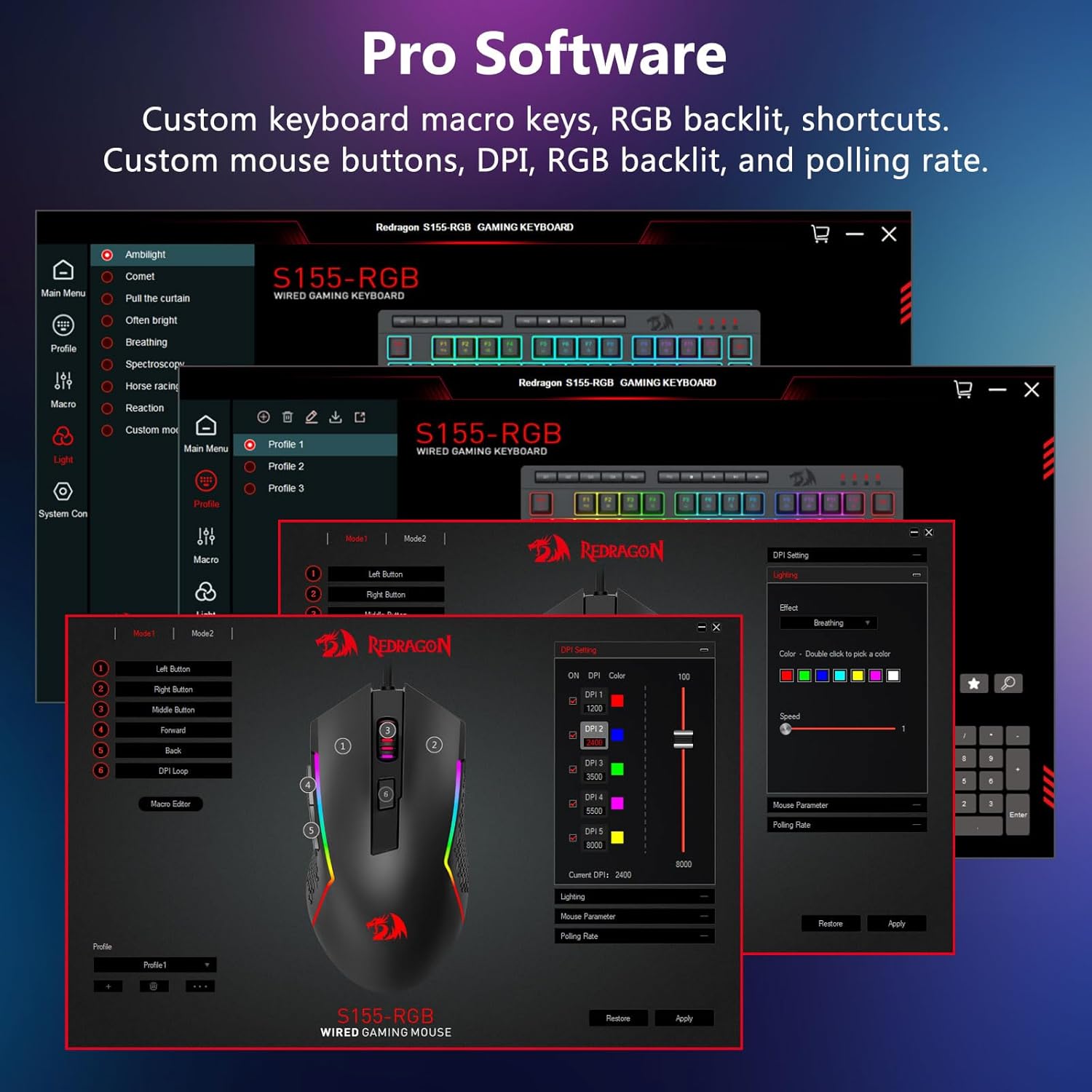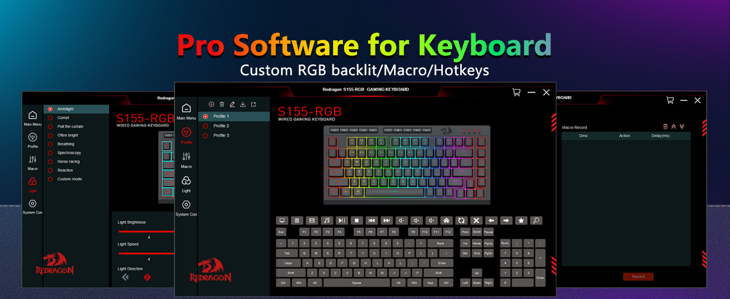 Хурӯян ҳамчун истеҳсолкунандаи як касбӣ ва таҳвилгари як касбӣ дар Хитой, тахассус ва моликият дар доираи бренди Redragon Extreagons асос ёфтааст. Мо фахр мекунем, ки S155 RGB RGB Rewlit Backlit Backlity ва Combo мушро пешниҳод менамоем, ки маҷмӯи боло барои бозигарони ҷиддӣ тарҳрезӣ шудааст. Клавиатура дорои такрори динамикаи RGB бо гуна марҳалаҳо ва эффектҳои сершумори фарқкунанда, дар ҳоле ки муш танзимҳои DPI-ро барои дақиқии Pinoint ва назорат ҳангоми бозӣ пешниҳод мекунад.