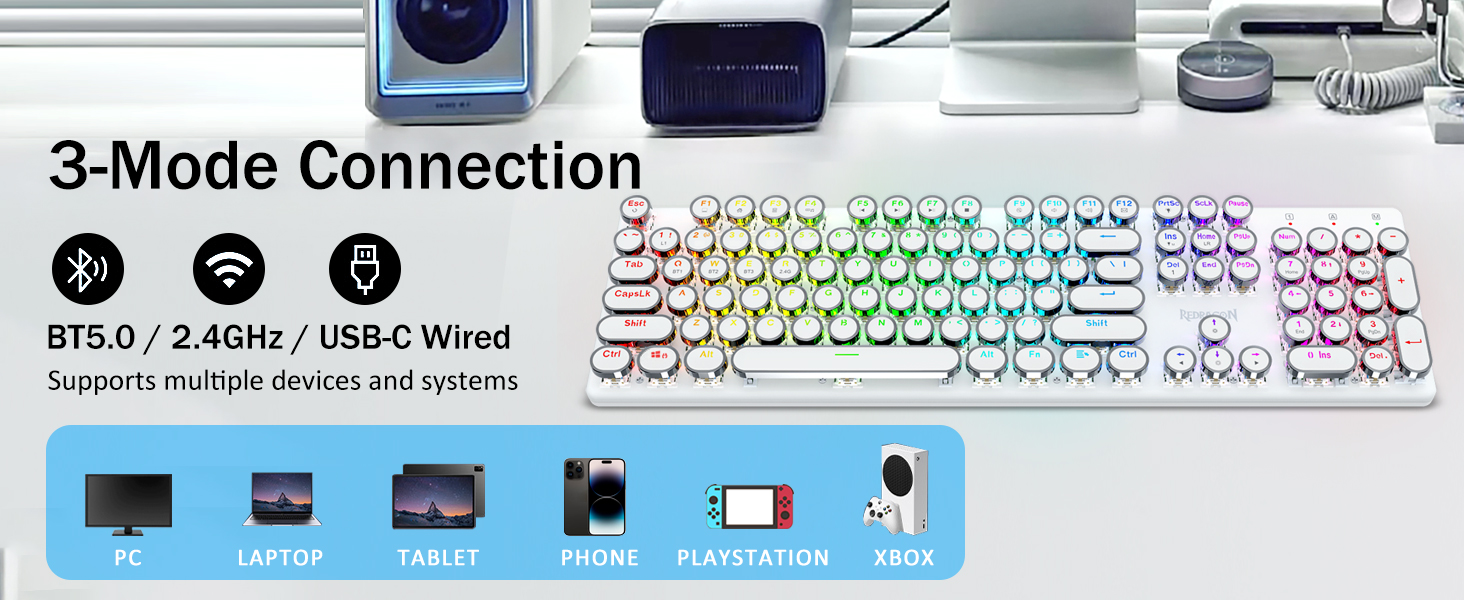 𝟯-𝗠𝗼𝗱𝗲 𝗖𝗼𝗻𝗻𝗲𝗰𝘁𝗶𝗼𝗻 𝗖𝗼𝗻𝗻𝗲𝗰𝘁𝗶𝗼𝗻- WSBRANGINGERINGERINGERINGERINGINGERINGERINGERIONIONTIONTIONTIONTIONTIONTIONTIONTIONTER, USB-C GOUD, Bluetooth 3.0 / 5.0 ва моддаҳои бесим, ки таҷрибаи корбариро дар ҳама соҳаҳо такмил медиҳанд. FN + Q / W / W-ро ба ҳолати Bluetooth пахш кунед, FN + R -ро пахш кунед.